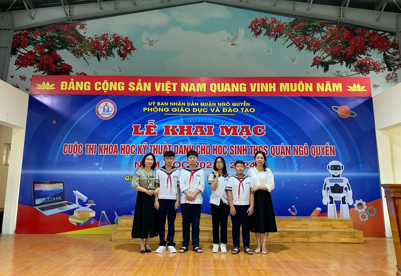 - Các em học sinh Nguyễn Phú Minh Vũ lớp 7B11 và em Nguyễn Minh Khôi lớp 7B7 dưới sự hướng dẫn của cô giáo Nguyễn Thị Đại với dự án “Ứng dụng công nghệ bluetooth và nam châm điện để chế tạo hệ thống điều khiển nâng vật theo vị trí”. Chúc các em học sinh tự tin, bình tĩnh, đạt kết quả cao trong kỳ thi.