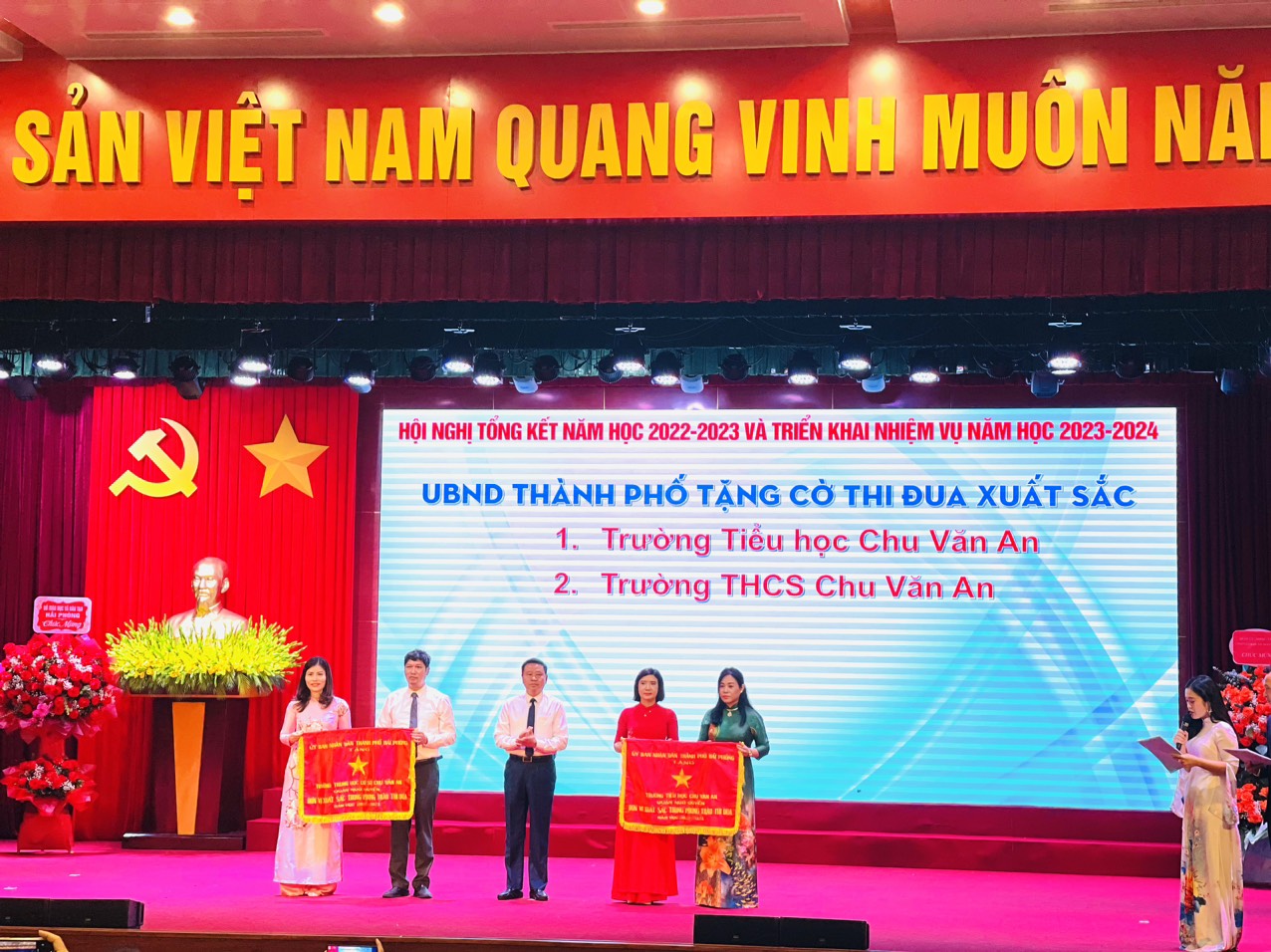 Tại Hội nghị, 04 thầy cô giáo nhà trường vinh dự nhận Bằng khen của Ủy ban nhân dân thành phố Hải Phòng, 25 thầy cô giáo nhận Giấy khen của Chủ tịch Ủy ban nhân dân quận Ngô Quyền vì có thành tích xuất sắc (Giải nhất) trong các kì thi cấp thành phố và trong công tác bồi dưỡng học sinh giỏi, học sinh năng khiếu. Ủy ban nhân dân quận cũng tặng Giấy khen cho 26 học sinh trường THCS Chu Văn An đạt thành tích xuất sắc trong các kì thi, giao lưu học sinh giỏi và dành vị trí thủ khoa trong kỳ thi vào lớp 10 THPT và lớp 10 Chuyên Trần Phú.