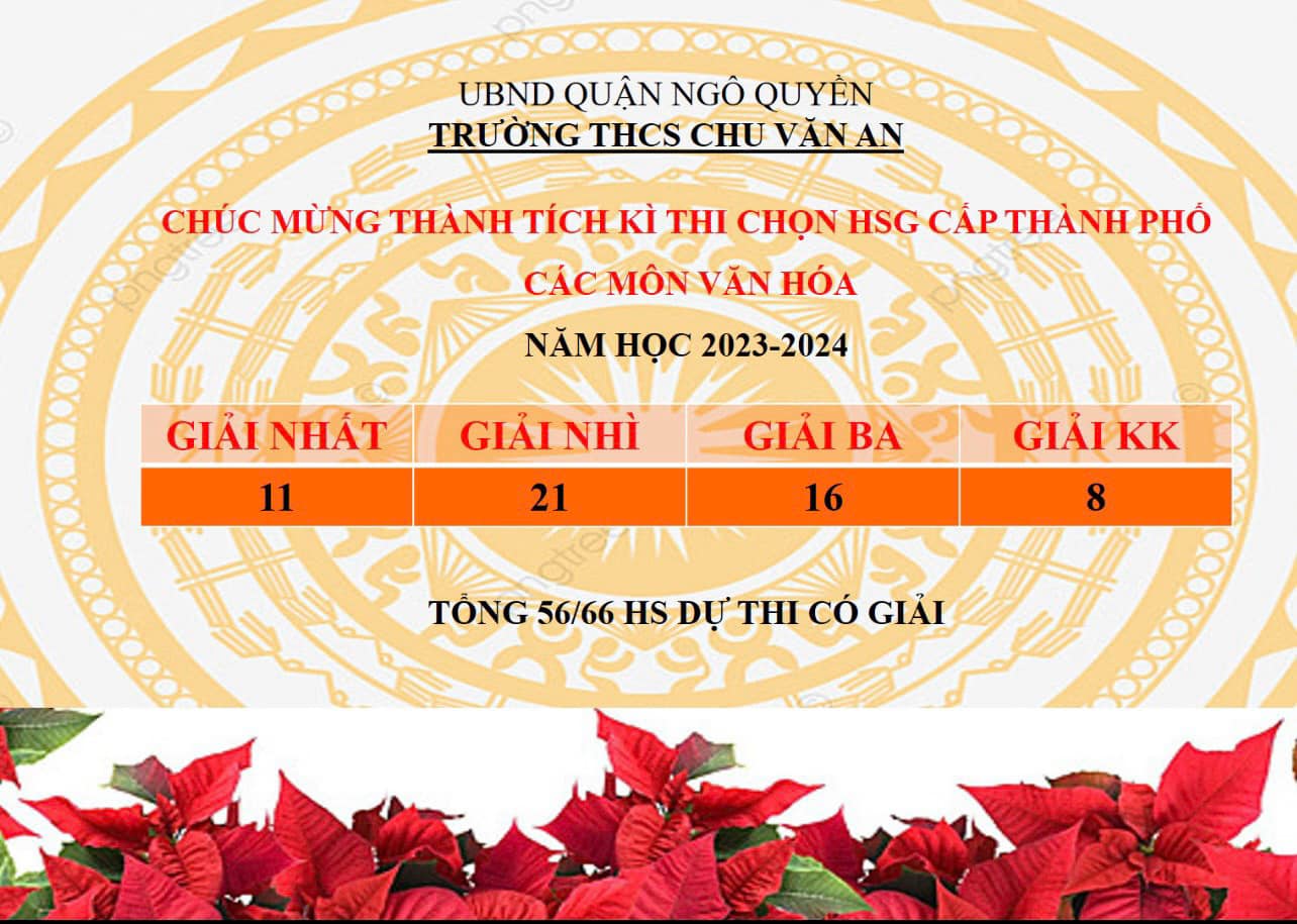 Trong những ngày cuối tháng 3, thầy và trò trường THCS Chu Văn An, quận Ngô Quyền ngập tràn niềm vui bởi những sắc hoa trạng nguyên bừng nở với thành tích xuất sắc trong kỳ thi chọn Học sinh giỏi các môn văn hoá cấp thành phố năm học 2023-2024.