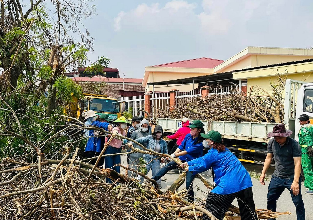 Tuy nhiên, sau khi đánh giá tình hình học sinh tham gia giao thông vẫn có nguy cơ mất an toàn vì các tuyến đường đến trường vẫn có nhiều cây xanh gãy đổ, nhiều lá cây, rác thải và bùn đất chưa được thu dọn. Sáng Chủ nhật ngày 15/09, gần 100 cán bộ, giáo viên, nhân viên nhà trường đã có mặt ở trường từ sớm để ra quân tích cực thu dọn cành cây gãy đổ, khơi thông hệ thống thoát nước, bảo đảm môi trường thông thoáng, an toàn tại các tuyến đường vào trường.