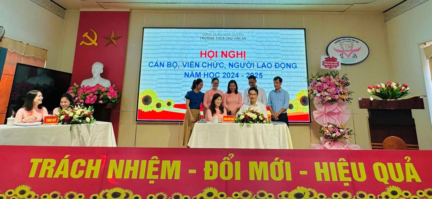 Chiều ngày 10 tháng 10 năm 2024, tại Trường THCS Chu Văn An, quận Ngô Quyền, thành phố Hải Phòng đã long trọng tổ chức Hội nghị Cán bộ, viên chức, người lao động năm học 2024-2025. Đây là sự kiện thường niên nhằm tổng kết các hoạt động của nhà trường trong năm học trước, đồng thời đề ra những phương hướng, nhiệm vụ cho năm học mới.