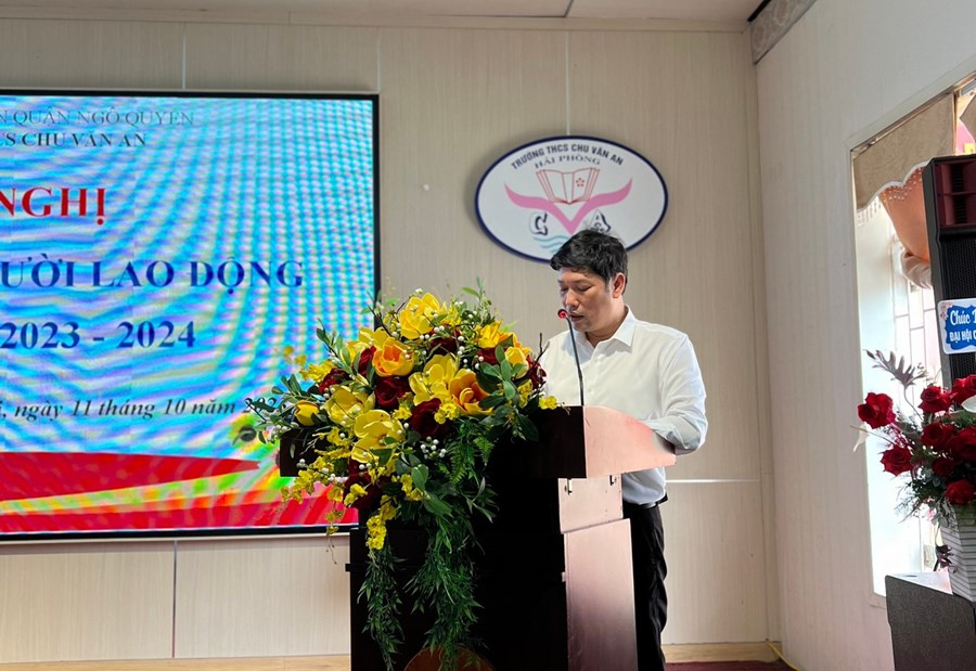 Căn cứ công văn số 01/ HD-LĐLĐ ngày 19 tháng 9 năm 2023 của Liên đoàn lao động quận Ngô Quyền về việc hướng dẫn thực hiện quy chế dân chủ cơ sở khối các đơn vị trường học năm học 2023-2024; để đánh giá kết quả thực hiện nhiệm vụ năm học 2022-2023 và đưa ra chỉ tiêu phù hợp để thực hiện nhiệm vụ giáo dục theo chỉ đạo của ngành trong năm học 2023-2024, sáng nay, ngày 11 tháng 10 năm 2023, trường THCS Chu Văn An long trọng tổ chức Hội nghị Viên chức, Người lao động năm học 2023- 2024.