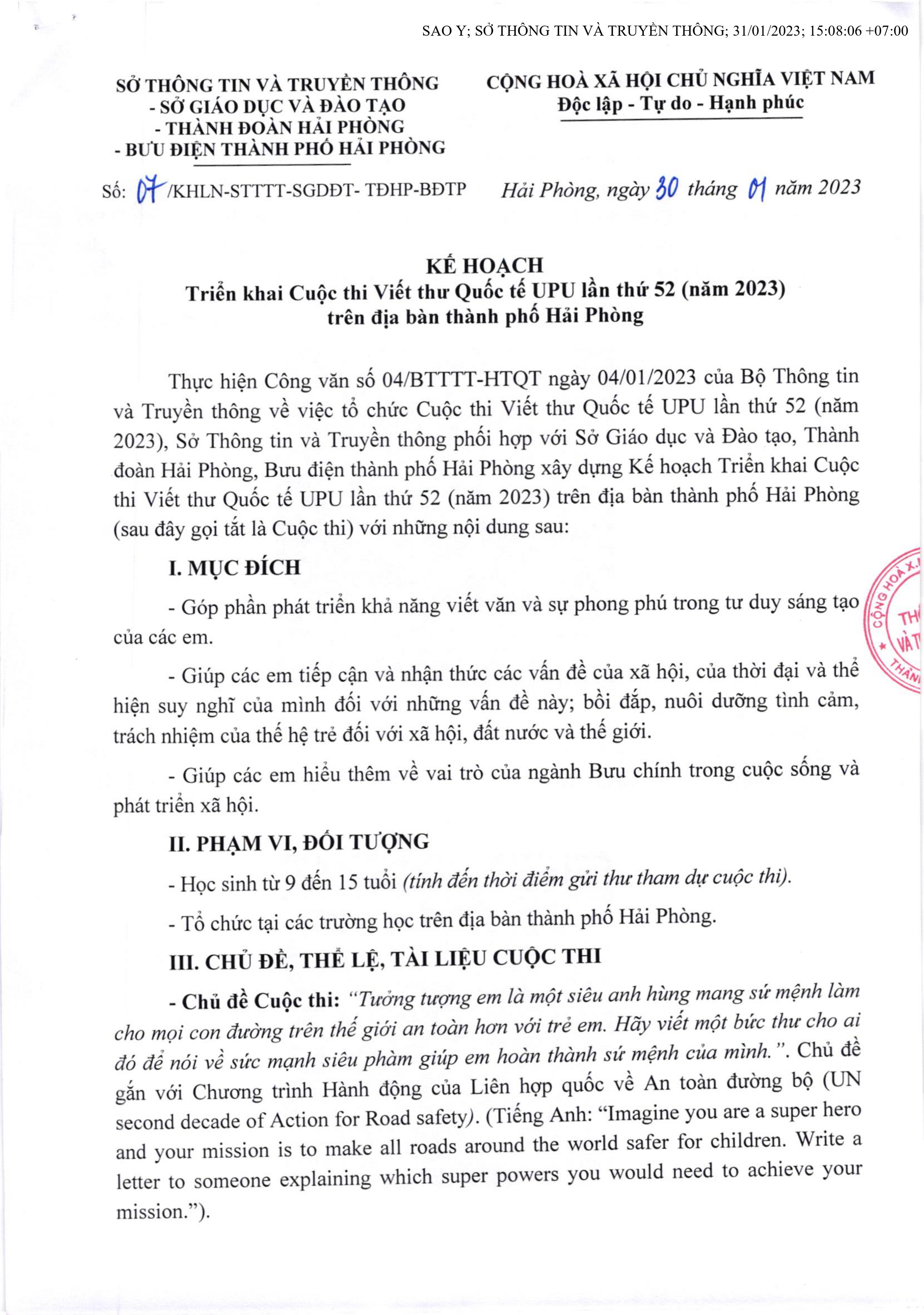- Kế hoạch triển khai cuộc thi của Sở thông tin và truyền thông.