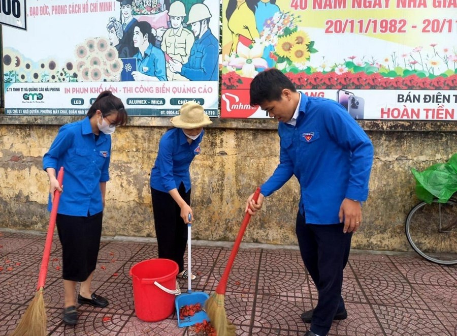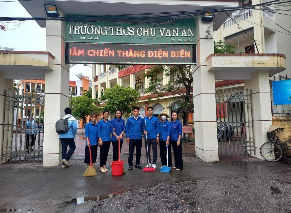 Thực hiện Kế hoạch số 111/KH-UBND ngày 7/4/2023 của Ủy ban nhân dân thành phố về việc tổ chức Lễ hội Hoa Phượng đỏ - Hải Phòng năm 2023; Căn cứ công văn số 947 – CV/TĐTN-BPT ngày 26/4/2023 của Ban Thường vụ Thành đoàn về việc triển khai các hoạt động bảo vệ môi trường, xóa quảng cáo rao vặt trái phép kỉ niệm các ngày lễ lớn trong tháng 5/2023 và kỉ niệm 68 năm Ngày giải phóng Hải Phòng (13/5/1955 – 13/5/2023), toàn bộ chi đoàn giáo viên trường THCS Chu Văn An đã thực hiện lễ ra quân xóa quảng cáo rao vặt trái phép trên bờ tường, gốc cây, cột điện sai quy định gây mất mỹ quan tại các tuyến đường trên địa bàn phường Lê Lợi.