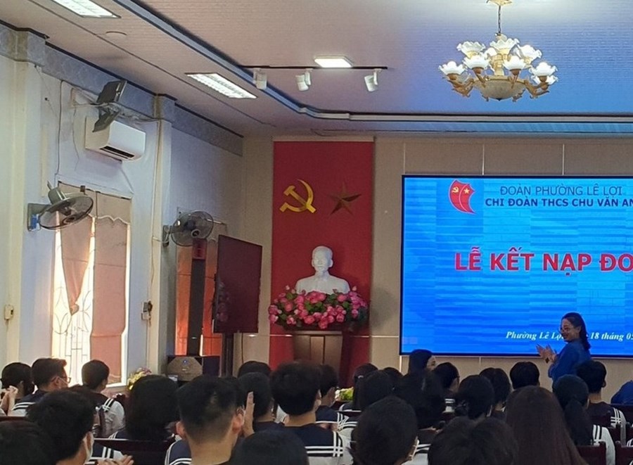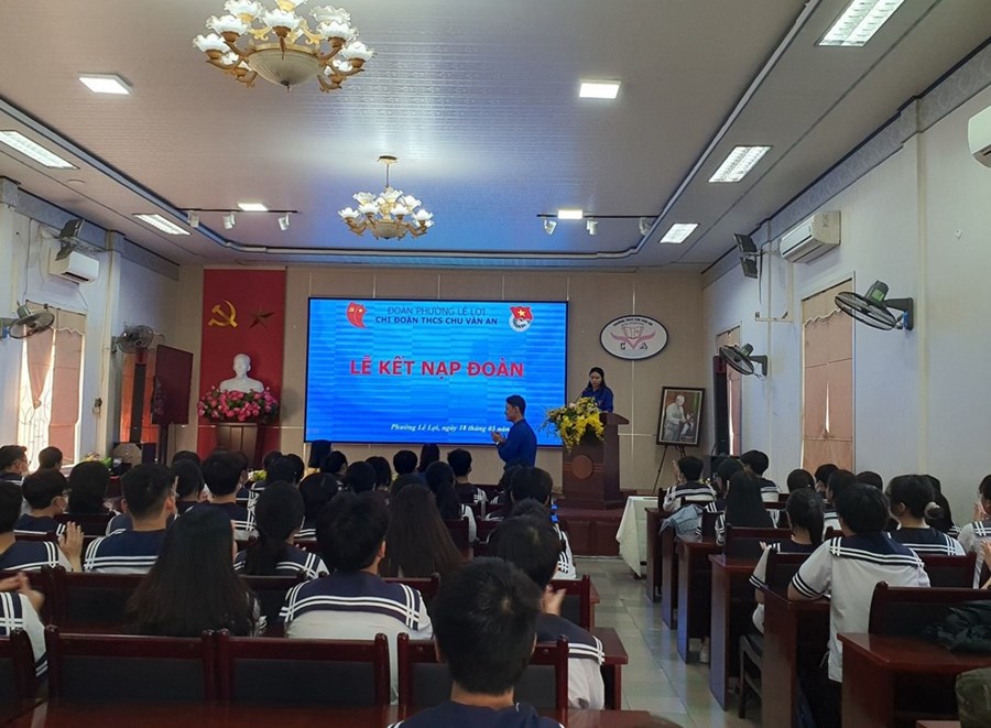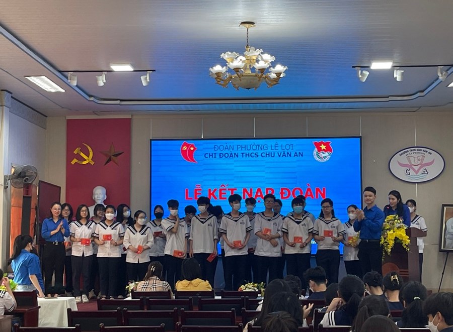 Thiết thực kỷ niệm 133 năm Ngày sinh Chủ tịch Hồ Chí Minh (19/05/1890 – 19/05/2023), đồng thời nhằm đẩy mạnh công tác giáo dục truyền thống yêu nước, lý tưởng cách mạng thanh niên; nâng cao nhận thức về Đoàn TNCS Hồ Chí Minh, về ý nghĩa vinh dự của người đoàn viên TNCS Hồ Chí Minh. Thực hiện kế hoạch của BCH Đoàn phường Lê Lợi, được sự chỉ đạo của chi bộ, Ban giám hiệu nhà trường, BCH Chi đoàn THCS Chu Văn An tổ chức Lễ kết nạp Đoàn đợt 2 cho học sinh khối 9.