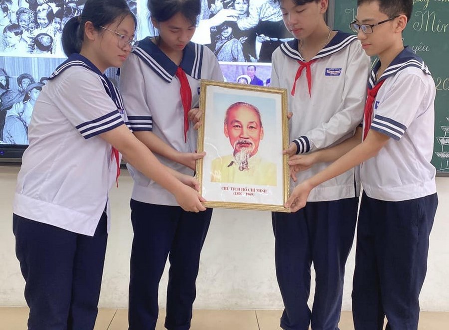 Mô hình “Lớp em treo ảnh Bác Hồ” kỉ niệm 133 năm Ngày sinh Chủ tịch Hồ Chí Minh (19/5/1890 – 19/5/2023) và 82 năm Ngày thành lập Đội TNTP Hồ Chí Minh (15/5/1941 – 15/5/2023), Liên đội Trường THCS Chu Văn An thực hiện mô hình “Lớp em treo ảnh Bác Hồ”