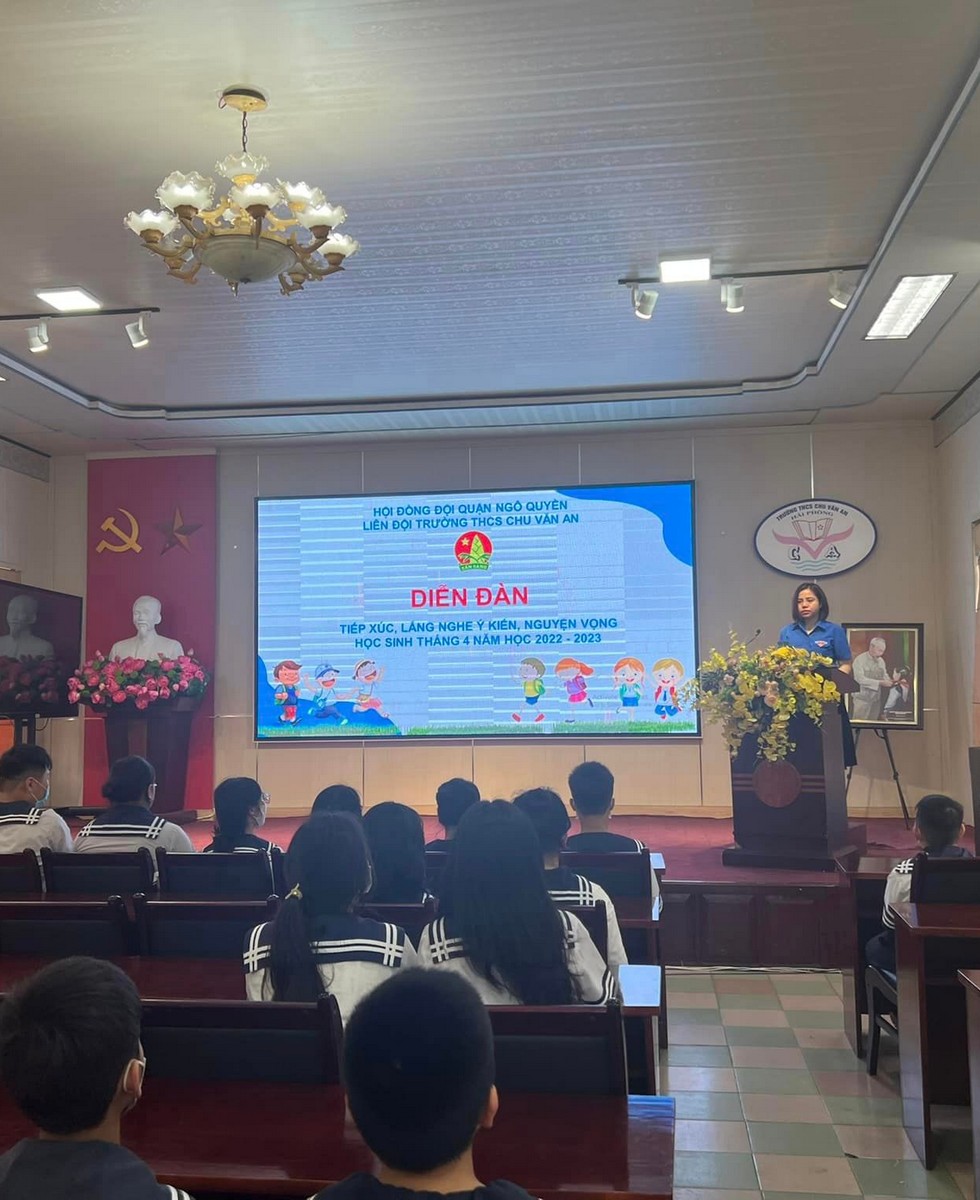 Ngày 28/4/2023 Liên đội trường THCS Chu Văn An đã tổ chức buổi tiếp xúc LẮNG NGHE Ý KIẾN, NGUYỆN VỌNG HỌC SINH.