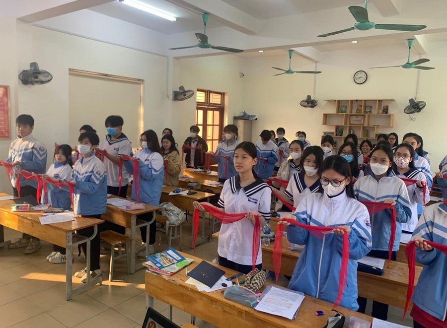 Tham dự buổi lễ có Cô giáo Phạm Thị Diệp Anh – Phó Hiệu trưởng, cô Phạm Trà My – Bí thư Chi đoàn, cùng các thầy cô giáo và toàn thể các bạn đội viên, đoàn viên thanh niên.