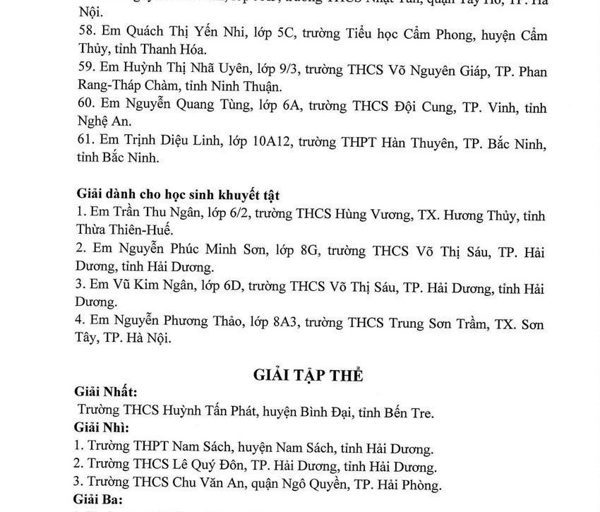 TRƯỜNG THCS CHU VĂN AN TIẾP NỐI BẢNG THÀNH TÍCH TRONG CUỘC THI VIẾT THƯ QUỐC TẾ UPU LẦN THỨ 52