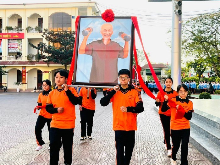 Mở đầu cho Hội khỏe Phù Đổng là màn diễu hành biểu dương lực lượng và rước đuốc của học sinh. Tất cả các em học sinh đều thể hiện tư thế mạnh mẽ, khỏe khoắn trong bộ đồng phục thể thao nhà trường và trong những chiếc áo màu cờ đỏ sao vàng rực rỡ. Mặc dù tiết trời khá lạnh, nhưng nụ cười vẫn luôn rạng rỡ nở trên môi của các em học sinh tham gia ngày hội. Song song với màn diễu hành là phần thuyết minh của cô Tổng phụ trách về thành tích nổi bật và rất đáng tự hào của học sinh nhà trường trong các phong trào thể dục thể thao.