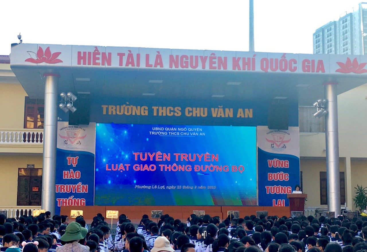 Hiện nay, an toàn giao thông là một vấn đề lớn, luôn nhận được sự quan tâm của toàn xã hội. Với mong muốn các em học sinh có hiểu biết và chấp hành nghiêm túc luật lệ giao thông, tham gia giao thông an toàn, chiều ngày 23/9/2023, trường THCS Chu Văn An kết hợp với đội cảnh sát giao thông trật tự công an quận Ngô Quyền tổ chức chương trình “ Tuyên truyền luật giao thông đường bộ “ tới cán bộ giáo viên và các em học sinh nhà trường.
