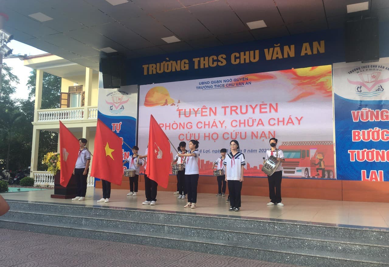 Với mong muốn giúp cán bộ, giáo viên, nhân viên, các em học sinh trong nhà trường ý thức được tầm quan trọng, tăng cường hiểu biết, kĩ năng phòng cháy chữa cháy, cứu nạn cứu hộ, sáng ngày 25/9/2023, trường THCS Chu Văn An tổ chức chương trình "Tuyên truyền Phòng cháy chữa cháy và cứu nạn cứu hộ". Tham dự buổi tuyên truyền có đồng chí Thượng úy Đỗ Quang Thái – Cán bộ phòng cảnh sát phòng cháy chữa cháy và cứu nạn công an Thành phố Hải Phòng.