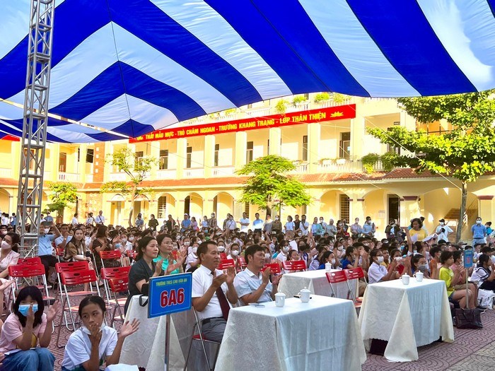 Đến dự với buổi lễ, có sự hiện diện của Ban giám hiệu, các thầy cô giáo trong nhà trường và hơn 600 học sinh khối 6 niên khóa 2022 – 2026. Các em đã có mặt đông đủ, đúng giờ, tham dự buổi lễ nghiêm túc với nét mặt hồn nhiên, vô tư và cả những bỡ ngỡ, rụt rè ban đầu.