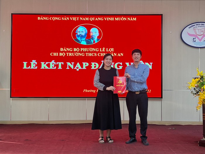 Bồi dưỡng, kết nạp Đảng viên mới là nhiệm vụ thường xuyên , có ý nghĩa quan trọng trong công tác xây dựng Đảng, góp phần phát triển nâng cao chất lượng và sức chiến đấu của tổ chức cơ sở Đảng nói chung và cá nhân Đảng viên nói riêng. Căn cứ vào Quyết định kết nạp Đảng viên của Đảng bộ Quận Ngô Quyền, xét đơn xin vào Đảng của quần chúng ưu tú Phạm Thanh Mai, chiều ngày 17 tháng 11 năm 2022 Chi bộ trường THCS Chu Văn An đã tổ chức kết nạp cho quần chứng ưu tú Phạm Thanh Mai - Giáo viên trường THCS Chu Văn An vào Đảng Cộng sản Việt Nam.