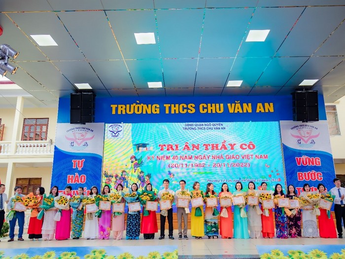 Hòa chung trong không khí tưng bừng, phấn khởi của các thế hệ nhà giáo và học sinh, sinh viên trên cả nước, trường THCS Chu Văn An đã tổ chức nhiều hoạt động sôi nổi, thiết thực hướng tới chào mừng kỷ niệm 40 năm ngày Nhà giáo Việt Nam (20/11/1982 - 20/11/2022). Đặc biệt chương trình”Tri ân thầy cô giáo” được tổ chức vào sáng ngày 16/11/2022 đã để lại nhiều cảm xúc trong lòng các thầy cô giáo và các em học sinh.
