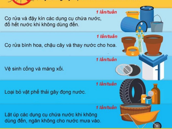 1. Hàng tuần chủ động thực hiện các biện pháp diệt bọ gậy; giữ vệ sinh môi trường nơi sinh sống.